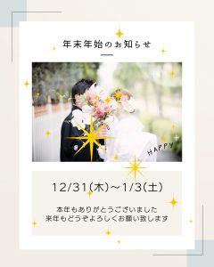 年末年始のお知らせ NEWS 2025.12.30 年末年始のお休みは、2025年12月31日~2026年1月3日までの間です。 2026年1月4日(日)10:00~より通常営業しております。 < PREV